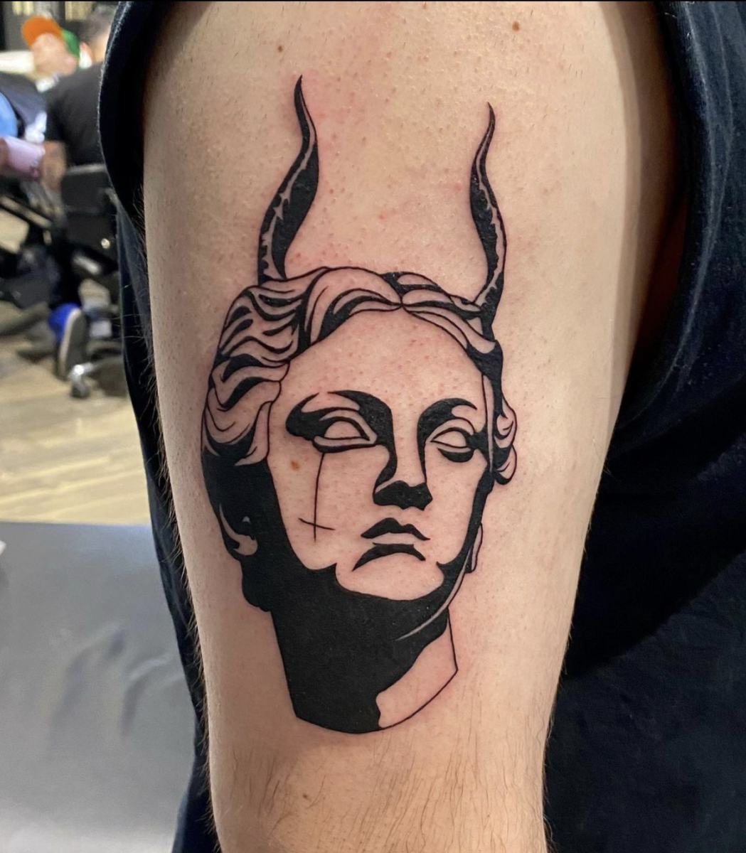 Blackwork tattoos have risen in popularity – but actually have a rich, extensive history. These tattoos are bold, solid planes of black ink which integrate skin-breaks or negative space to create a design. Most commonly, these tattoos are abstract patterns and geometric shapes. Although, its possible for these tattoos to also have figurative forms, scenes and subjects. A large portion of this style of tattoo is consistent of tribal designs, however, it also includes dark art, geometry, ornamental, black out, graphic art, and sometimes lettering. As a result, any design made of just black ink without shading or color can be labeled as blackwork.