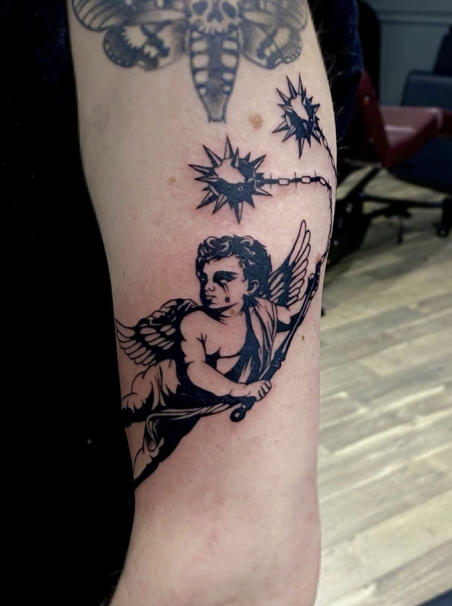 Graphic art is similar to Dark Art, with elements of scenes and characters. But, this style is informed by visual prints of the modern mainstream, and is similar to illustrative tattoos. Often these tattoos have inspirations of manga art forms.