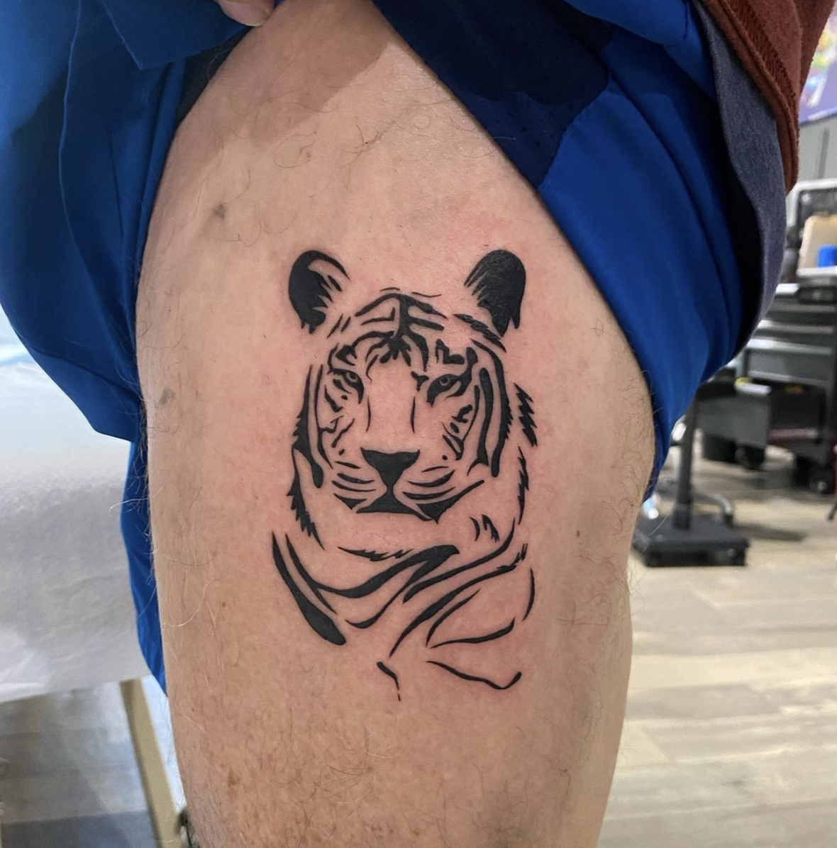 Blackout designs are more modern than the previously listed styles. These tattoos consist of large blocks completely filled in with black. But, they do not typically play with skin-breaks and are often used for cover ups. These styles of tattoos are typically on arms and legs.